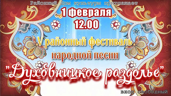 1 февраля 12.00 V районный фестиваль народной песни "Духовницкое раздолье"