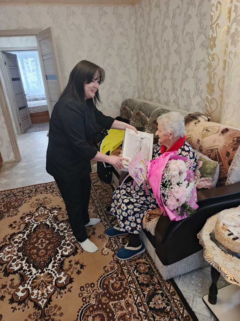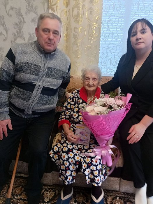 12 декабря 101 год отметила жительница села Дмитриевка, труженица тыла Клавдия Борисовна Солодовникова. Со знаменательной датой именинницу поздравили заместитель главы администрации Духовницкого района Лариса Белесова и глава Дмитриевского муниципального образования Алексей Бердников. Гости вручили долгожителю памятные подарки и цветы, сердечно поблагодарили за самоотверженный труд в годы Великой Отечественной войны, пожелали крепкого здоровья, жизненных сил и энергии, мира, благополучия на долгие годы, заботы и внимания родных и близких! Клавдия Борисовна была тронута приездом гостей, тепло поблагодарила за заботу и внимание.