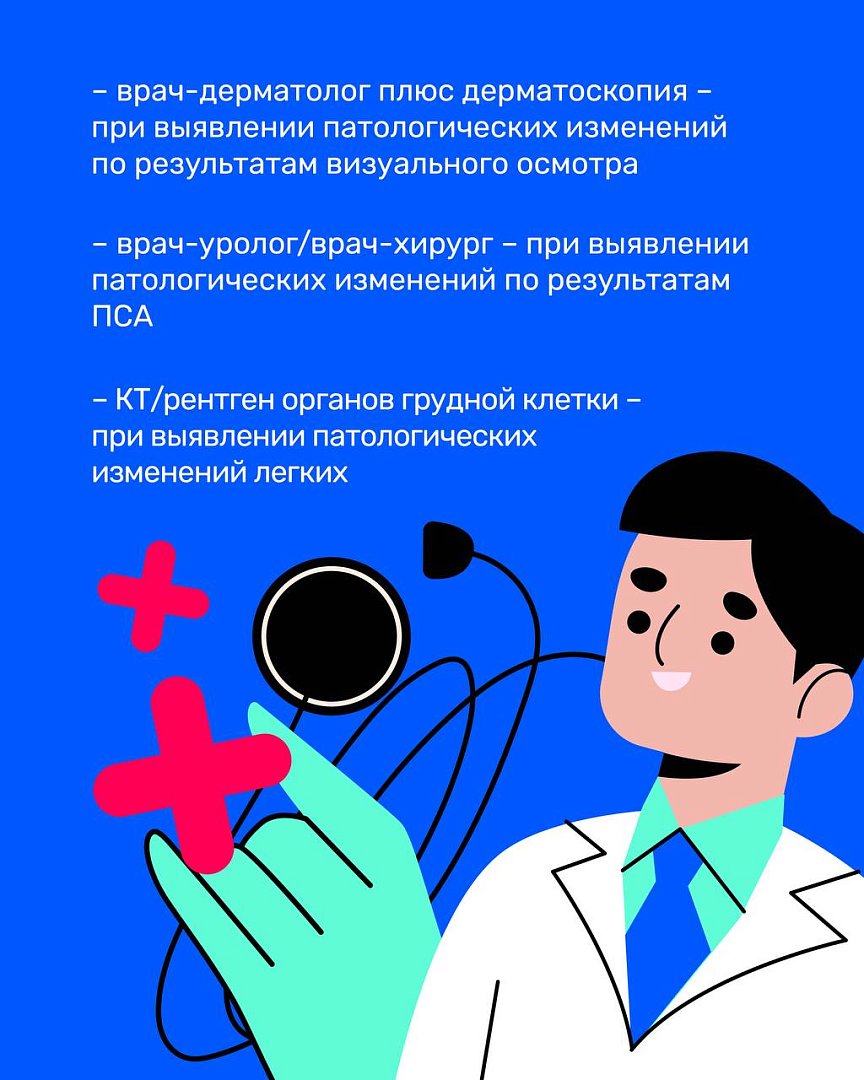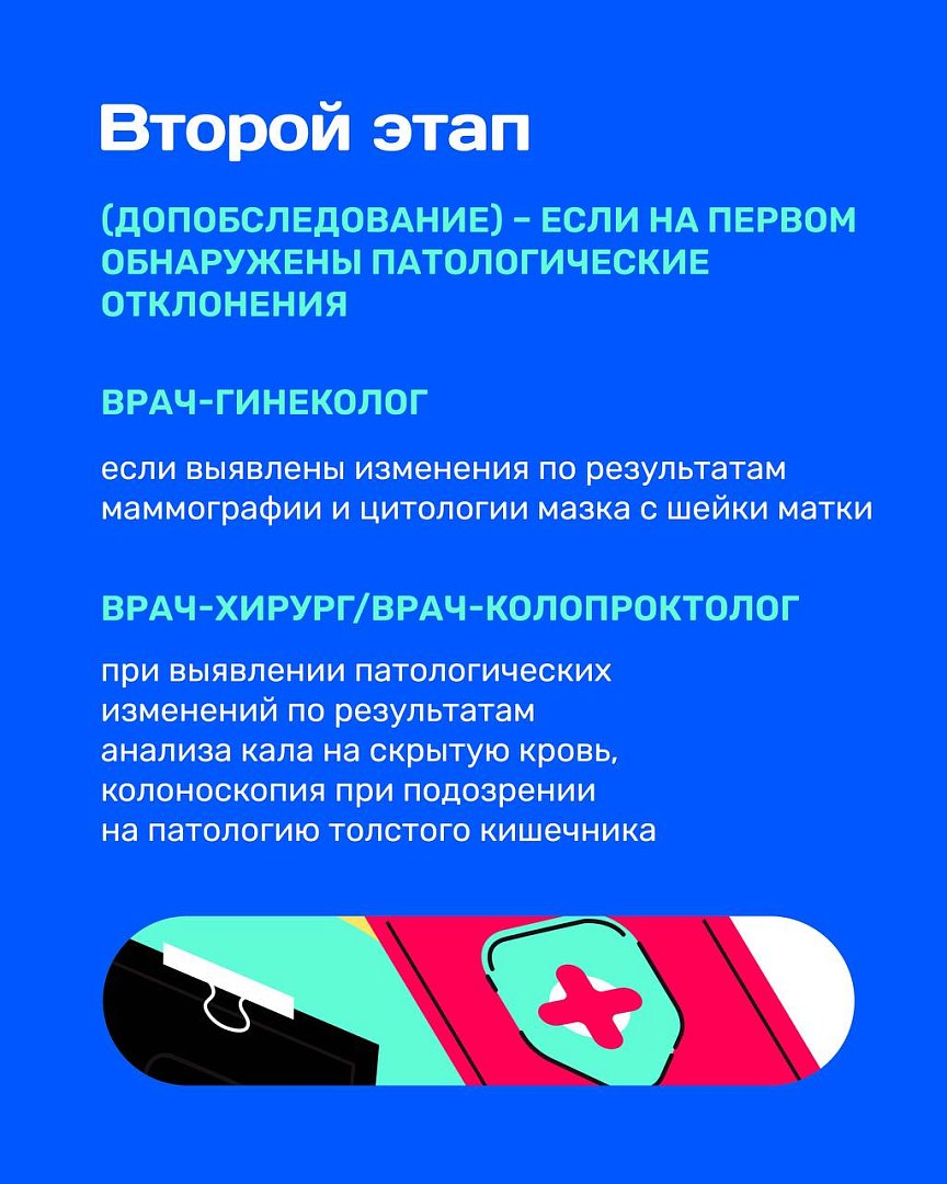 Диспансеризация проводится в два этапа. Подробнее — в карточках
