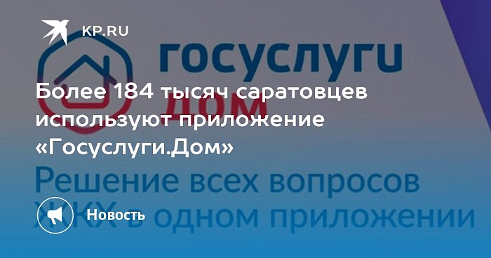 Более 184 тысяч жителей Саратовской области пользуются приложением «Госуслуги.Дом»Более 184 тысяч жителей Саратовской области активно используют мобильное приложение «Госуслуги.Дом».