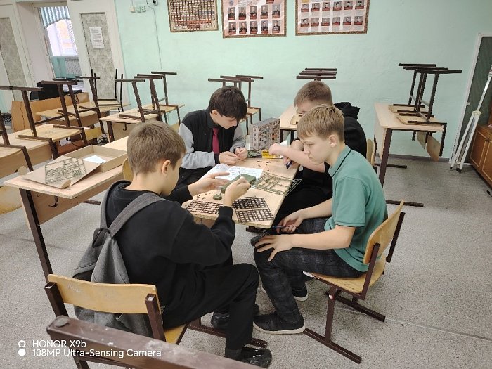 Кружок "Историческая панорама"В МОУ «СОШ им. Г. И. Марчука р. п. Духовницкое» работает кружок «Историческая панорама». Участники кружка, ребята из 8 «А» класса, Гаммадаев Алик, Лишик Артём, Кузьминов Иван и Поташников Степан под руководством учителя истории Лашевского М.А. в текущем году приступили к изготовлению макета, посвящённого нашим землякам-участникам Специальной военной операции на Украине. В настоящий момент ребята осуществляют сборку объектов панорамы, после чего приступят к оформлению макета местности.Кружок "Историческая панорама"