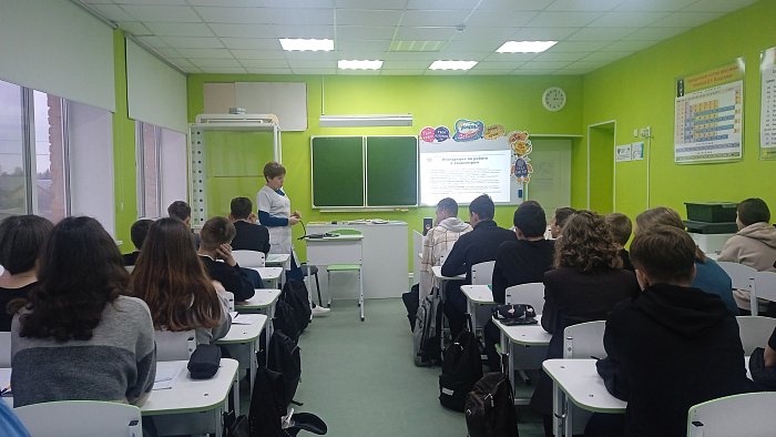 Медицинская сестра школы Терехова Т.В. познакомила обучающихся с медицинским прибором тонометром, видами тонометра ( механический и автоматический), рассказала из чего состоит прибор, для чего используется, показала алгоритм работы с данным прибором. Ребята проявили инициативу, постарались применить полученные знания на практике и измерили давление своих одноклассников.