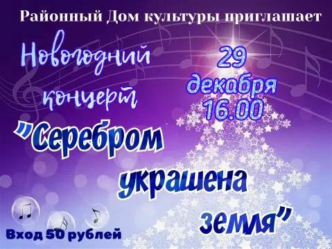 Районный Дом культуры приглашает 29 декабря в 16.00 новогодний концерт