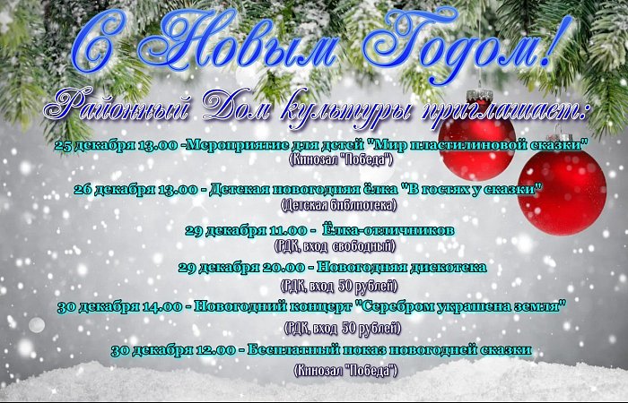️ 29 декабря 20.00 - Новогодняя дискотека (РДК, вход 50 рублей)