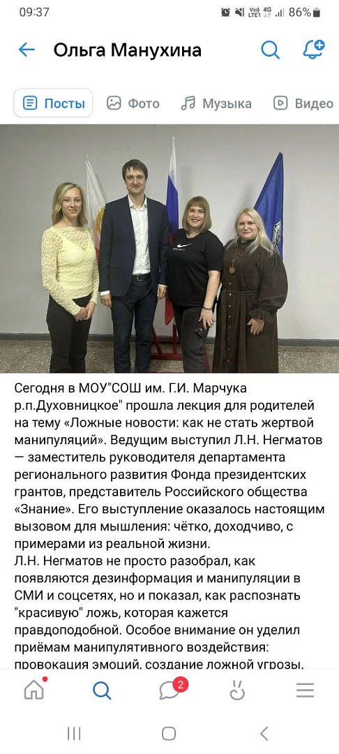 Родительское собраниеВ минувшую пятницу в Духовницкой школе состоялось важное родительское собрание на тему «Ложные новости: как не стать жертвой манипуляций», которое прошло в рамках проекта «Родительский университет: знание — сила». Этот проект реализуется совместными усилиями министерства образования, регионального филиала Российского общества «Знание» и регионального родительского комитета. В современном обществе знания становятся одной из главных ценностей, и Российское общество «Знание» занимает лидирующие позиции в области просвещения и распространения достоверной информации среди граждан России.