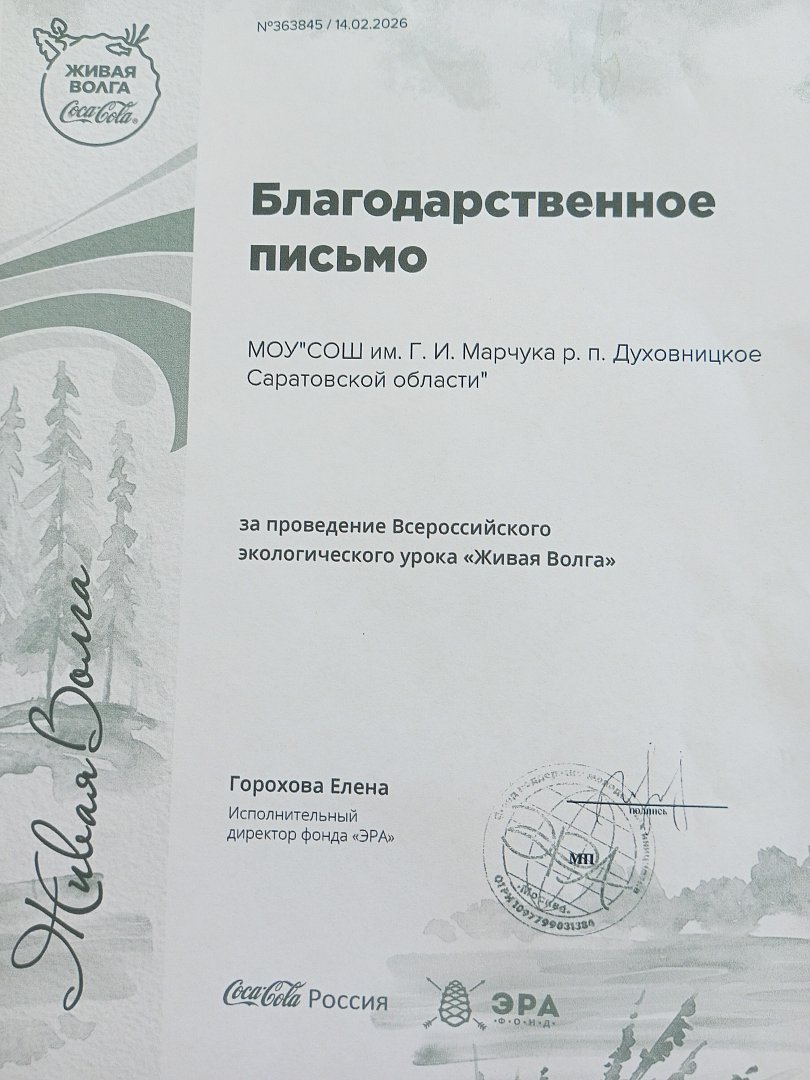 Урок экологической грамотности "Живая Волга"Стекленёва Светлана Юрьевна учитель географии и биологии МОУ "СОШ им. Г. И. Марчука р. п. Духовницкое" рассказала ученикам 5-х классов кружка "Практическая биология" ЦО "Точка роста" откуда берет свое начало великая река, о том, какая трагедия нависла над великой рекой и какие меры должны быть предприняты для ее спасения. Ребята узнали, что наличие рек - это большое счастье, но и большая ответственность! Чем больше мы заботимся о воде, чем бережнее к ней относимся и следим за состоянием водоемов, тем чище будет вода. Да, воды остается много, но вот чистая пресная вода становится дефицитом. Заботясь о чистоте воды, мы заботимся о собственном здоровье и о собственной жизни. Нам очень повезло жить рядом с великой российской рекой.