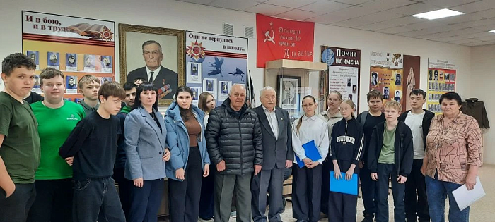 Также перед школьниками выступили почетные гости: Юрий Матвеевич Бараковский – участник ликвидации последствий аварии на ЧАЭС, Надежда Ивановна Смольянинова - старший библиотекарь районной библиотеки, а также Михаил Юрьевич Дементьев – председатель районного Совета ветеранов.