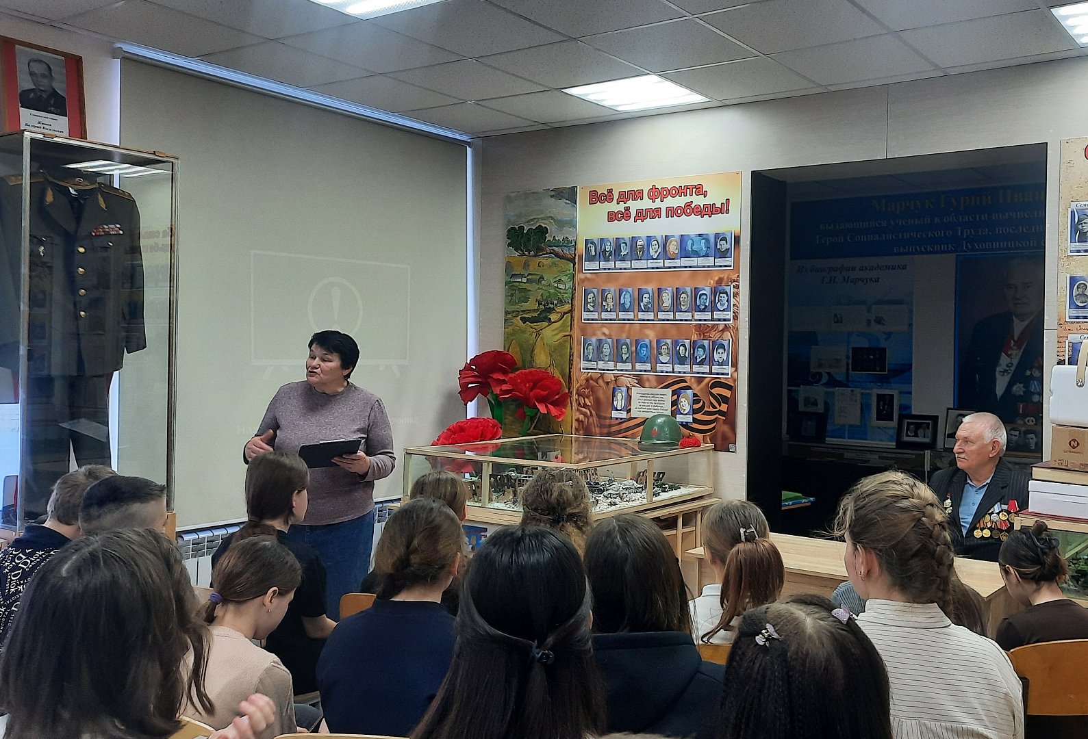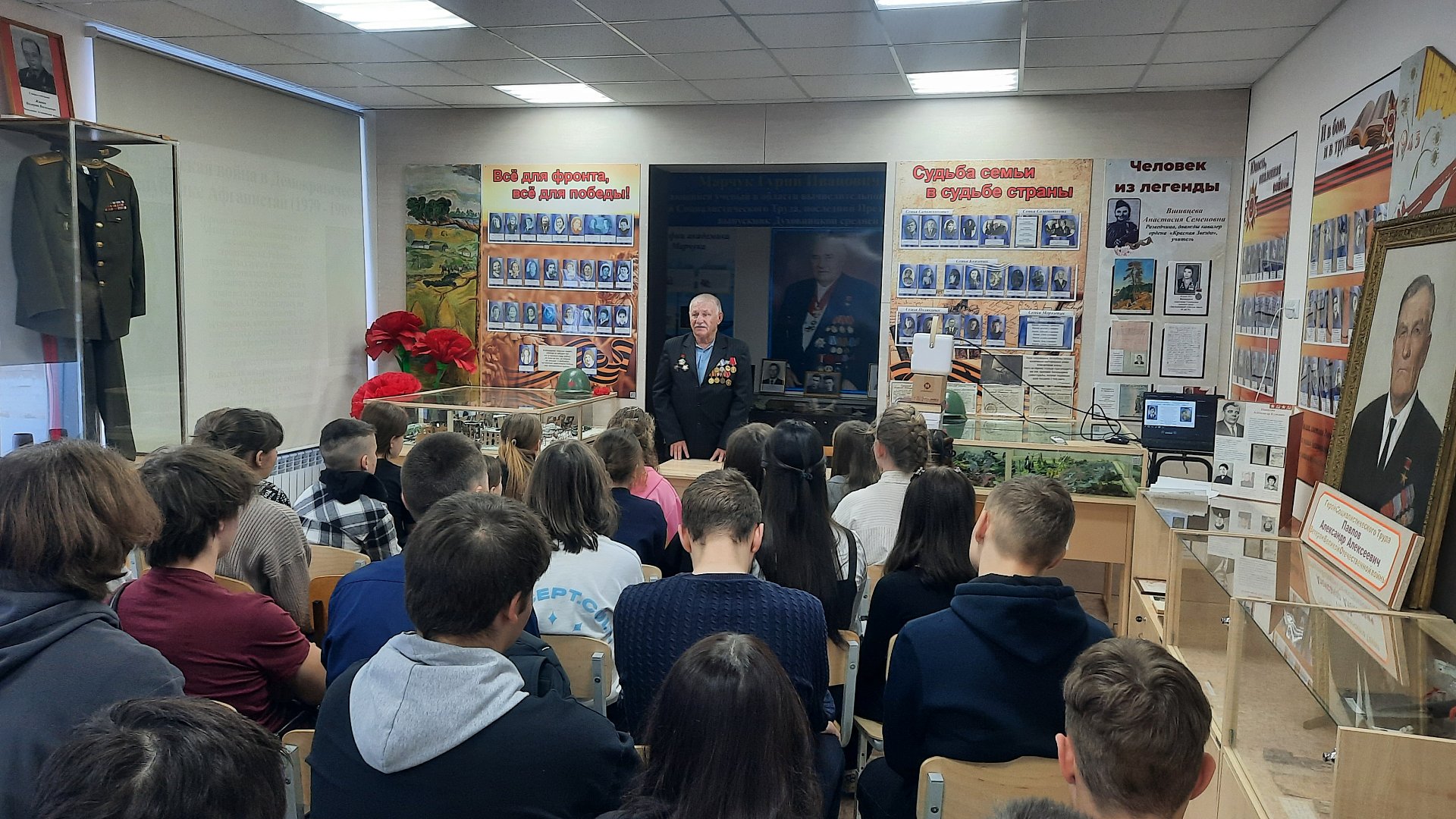 На Уроке Мужества присутствовал Анатолий Александрович Сергеев, участник войны в Афганистане, прапорщик ВДВ, кавалер ордена Красной Звезды.