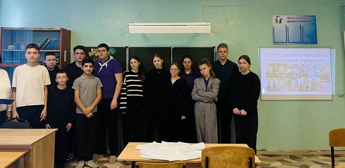 Во время занятия ребята узнали о вкладе наших соотечественниц в победу над фашизмом. Они увидели презентации и видеоролики о героизме девушек, ставших солдатами, врачами, связистами и бойцами сопротивления.