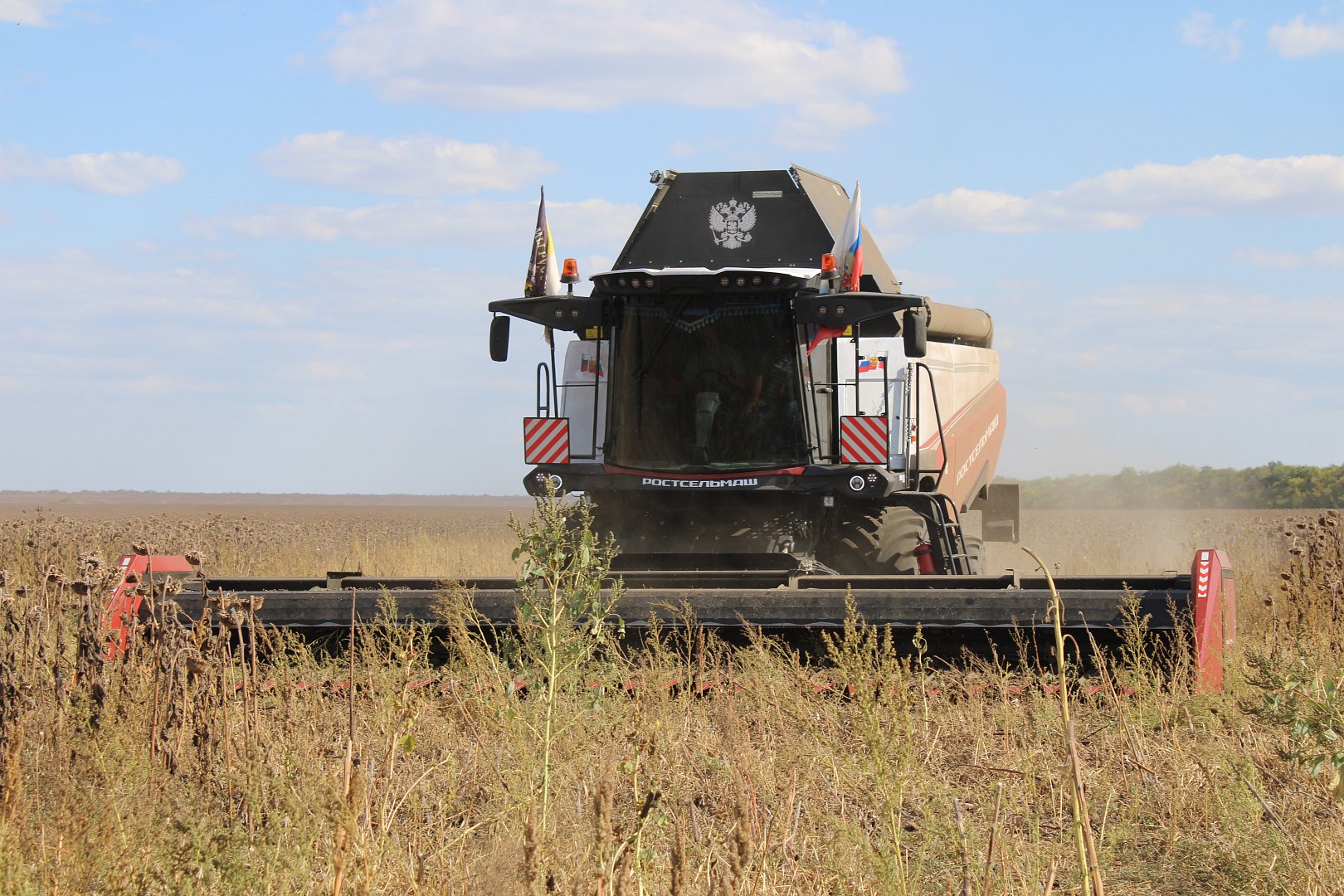 18 сентября на полях ИП «Рашидов М.М.» была проведена презентация этого комбайна для руководителей крестьянско-фермерских хозяйств и специалистов АПК Духовницкого, Пугачевского, Балаковского и ряда других районов. У всех присутствующих на данной выставке имелась возможность не только ознакомиться с комбайном визуально, но и испытать его в действии. Руководитель отдела продаж официального дилера «Ростсельмаш» компании ООО «Агросоюз-Маркет» Клемишев Максим Александрович представил подробную характеристику этого высокопроизводительного комбайна с уникальной двухбарабанной системой и рассказал об основных преимуществах модели.