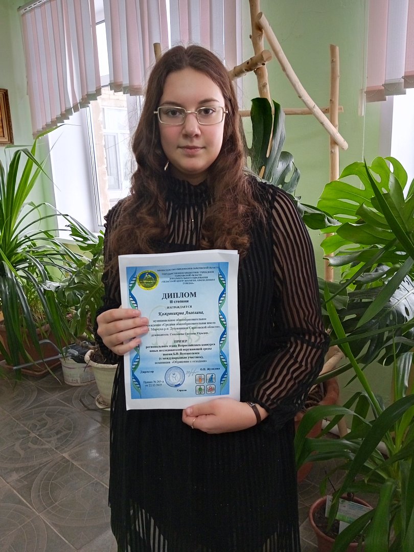 Юные исследователи окружающей среды.Подведены итоги регионального этапа Всероссийского конкурса юных исследователей окружающей среды имени Б.В. Всесвятского (с международным участием). Региональный этап Всероссийского конкурса юных исследователей окружающей среды имени Б.В. Всесвятского (с международным участием), итоги которого подведены в Областном центре экологии, краеведения и туризма, стал площадкой для демонстрации уникальных проектов, отражающих глубокое понимание экологических проблем. Конкурс проводился с целью выявления и развития у обучающихся интереса и способностей к проектной, научно-исследовательской, инженерно - технической, изобретательской, творческой деятельности, направленной на изучение естественных и инженерных наук, повышение естественнонаучной грамотности. Призёром конкурса стала Кожевникова Ангелина, ученица 8 "Б" класса МОУ "СОШ им. Марчука р. п. Духовницкое" (руководитель работы: учитель географии и биологии Стекленёва С. Ю.). Ангелина награждена Дипломом 3 степени в номинации "Обращение с отходами".