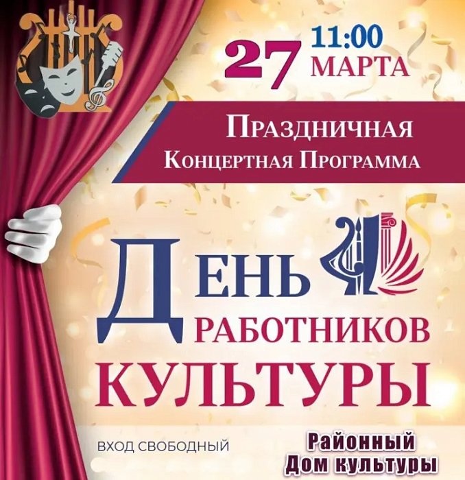 Районный Дом культуры приглашает 27 марта 11.00 Праздничная Концертная Программа "День работников культуры"